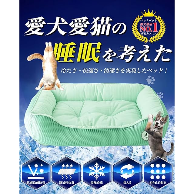 IMA HOME 【獣医師監修×瞬涼®冷感】 犬 猫 ベッド 夏 ひんやり 冷感 ペットベッド 洗える 犬 夏用ベッド ペットクッション 犬用ベッド 夏用 猫ベッド 3D通気性優れ ふわふわ ペットソファー 暑さ対策 (グリーン 58X44X18CM) | つむぎ屋