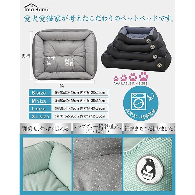 【アップグレード滑り止め&×丸洗いOK】犬 ベッドの底部は従来の粒型滑り止めから、花型の滑り止めにしました。滑り効果が約2倍!フローリングなどの滑りやすい場所に置いても、心配なし。シニアや小型のワンちゃんとネコちゃん、怪我をしてしまった犬猫たちにも安心。「お手入れ簡単」ご家庭の洗濯機で丸洗いできるため、いつでも清潔に使える。清潔・耐久性・最高の寝心地を求める愛犬家にピッタリのペットベッドです。