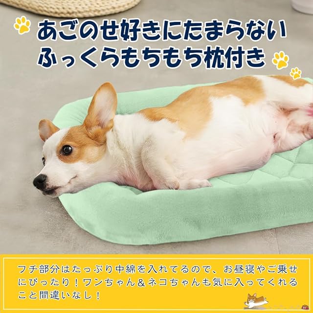 EMME ペットベッド 洗える ペットマット フランネル 犬 ベッド 猫 ペット用ベッド 小型 中型 子犬 老犬 介護 マット 洗える ペット用 クッション 滑り止め 寝心地良い ペット ぺっと 春 秋 冬 夏用 通年 清掃しやすい 74x48cm グリーン Mサイズ
