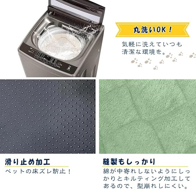 【滑り止め加工】裏面のノンスキッドボトムは、滑り止め機能があり置いた場所にそのまま滑ることなく置くことができます。【洗えるペットマット】手洗いOK、洗濯機洗いも可能です。いつでも清潔に保てることで、マットも快適に過ごすことができます。また、清潔を保つことで細菌やダニの増殖を抑えて、マットは皮膚疾患を予防できます。