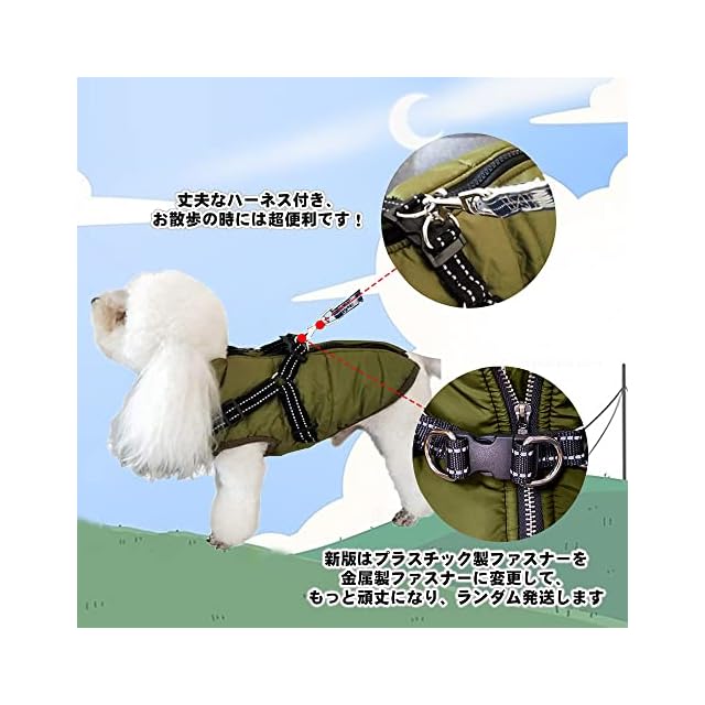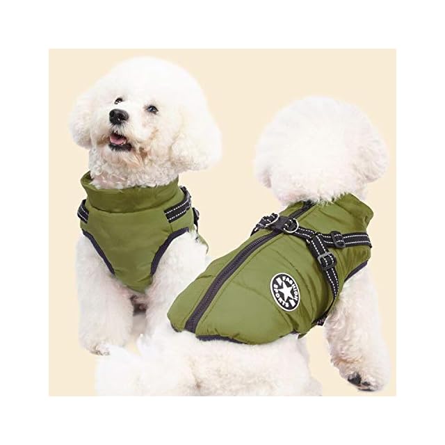IGUGHI ふわふわ ダウンベスト風ジャケット 犬洋服 冬 裏ボア 犬服 ジャケット パーカー 袖なし ドッグウェア 防寒 防水 リードリングあり 綿服アウター お出かけ 散歩 小型犬 中型犬 グリンー S~XXL | つむぎ屋