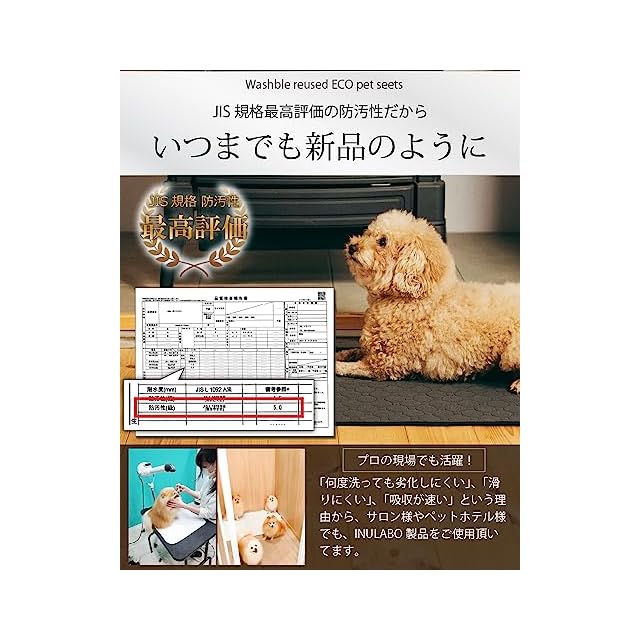 【おトイレがよく見える】 ワンちゃんの排泄物には、病気のサインがいっぱい。INULABOの洗えるシーツは、よく見える真っ白なシートなので、愛犬の変化にすぐに気づくことができます。また、ペット用品の多くは実用性にばかり着目され、デザイン性を軽視される傾向があります。INULABOの防水マットは、リビングに敷いても「トイレ感」がない純白に仕上げています。防汚性も抜群なので、お手入れもとっても簡単です。