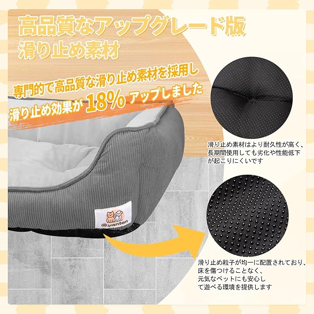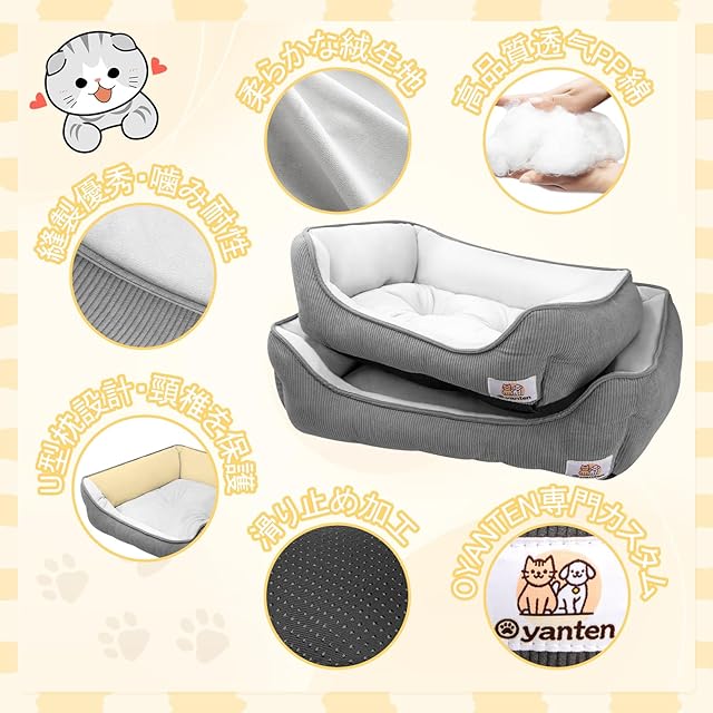 OYANTEN 犬 ベッド 猫 ベッド クッション - 四角 オールシーズン ふわふわ 洗える もふもふ 滑り止め加工 もこもこ 通年 ソファ 噛み耐性 冷え防止設計 ぐっすり眠る キャット ドッグ 反発 犬用 猫用 ペット用品 暖かい 秋 冬 小型犬 猫 子犬用 子猫用 (グレー 60x50x15cm M) | つむぎ屋