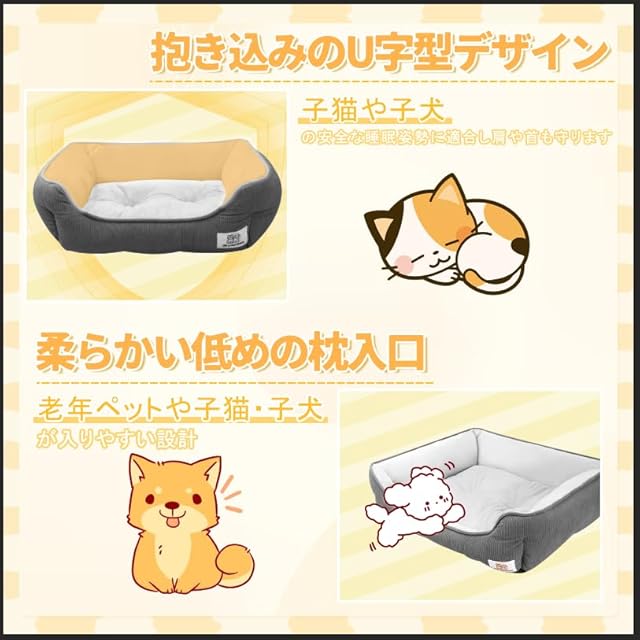 ✨【抱き込み型設計】枕部分は丈夫なU型カーブを採用し、愛犬・愛猫を飼い主の愛のごとく包み込むデザイン。三方を高く、一方を低く設計することで、子犬子猫や老年犬老年猫も踏み込みやすく配慮。