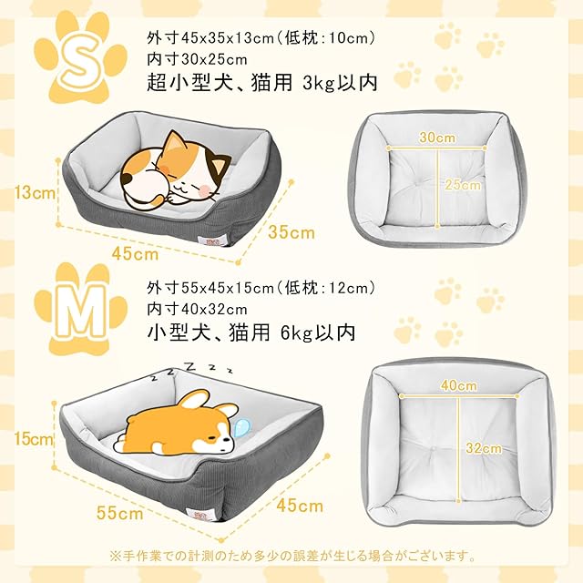 ✨【仕様参考】ご購入前に必ず製品情報をご確認いただき、愛犬・愛猫にぴったりで安心してお使いいただけますOYANTENのペット用ベッドをお選びください。手作業で測っているので、若干の誤差は許容範囲とさせて頂いております。外寸60×50×15cm(正面低枕部高さ12cm)、内寸40×32cm、重量約1100g。子犬・子猫、小型犬、猫向け、全年齢向け、推奨体重:6kgまでとなります。
