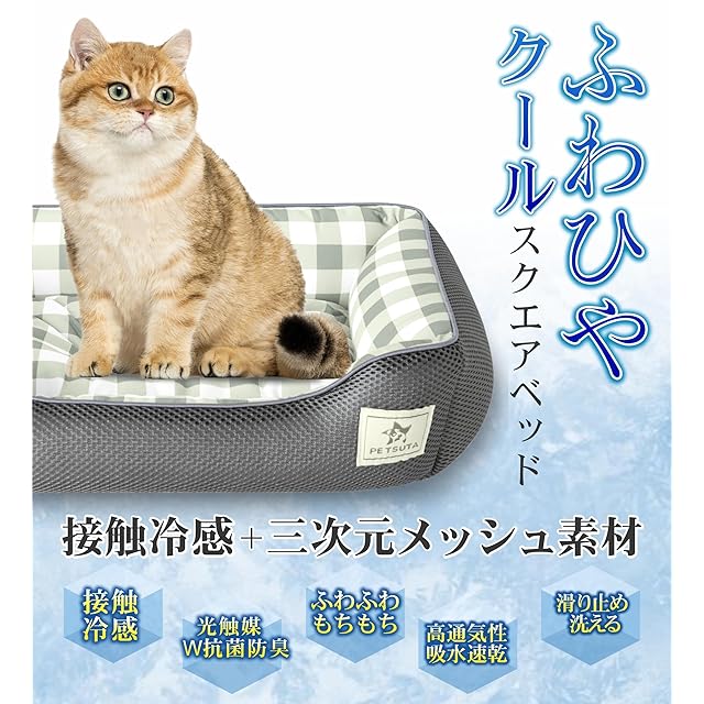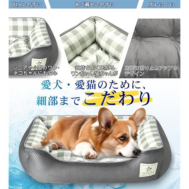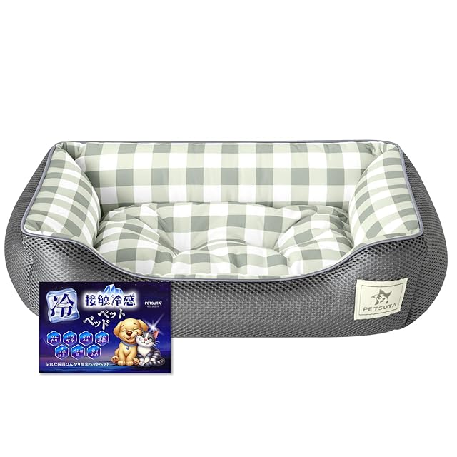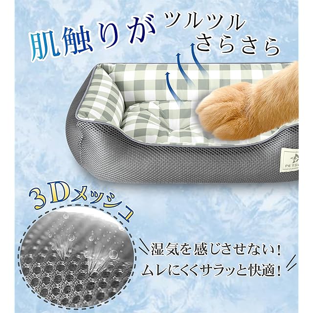 PETSUTA 犬 ベッド 夏【消臭+制菌】猫 ベッド 冷感 ペットベッド 犬 夏用ベッド ひんやり 暑さ対策 高通気性 猫用ベッド 犬用ベッド もちふわ ペットクッション 吸水速乾 洗える 滑り止め(グレー 58x44x18cm) | つむぎ屋