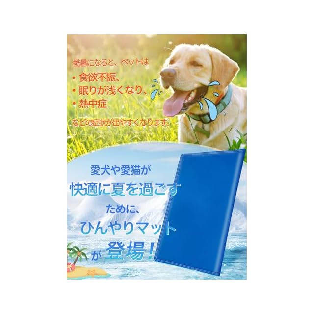 【優れた冷却効果】マット内のジェルがペットの体温を吸収・放散し、冷感を長時間維持します。ペットの体感温度を約9℃下げ、適度な冷たさを保ちながらペットの健康を守ります。猛暑の中でもペットの熱中症対策に役立ちます。全身を毛で覆われたペットにとって、ひんやりマットは夏の必需品です。