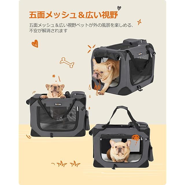 【しっかりした作り】厚地なオックスフォード、収納できる大きいポケット、爪でも破れにくいメッシュ窓、ペットのことをよく考えた細部へのこだわりはいっぱい工夫しました。