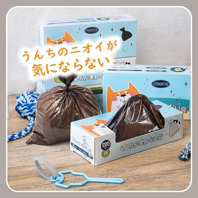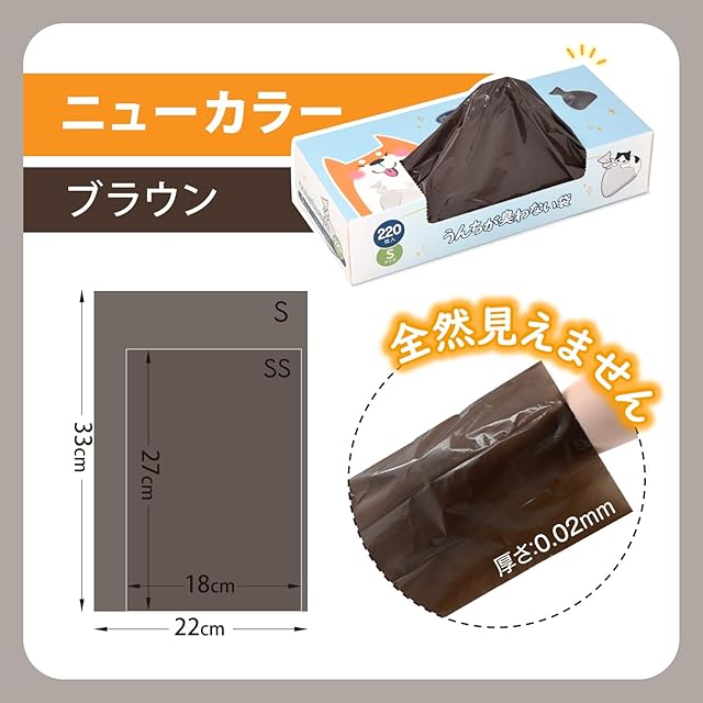 Deefre うんちが臭わない袋 犬うんち処理袋 Sサイズ 220枚×2個 (440枚) におわない袋 防臭袋 防臭ポリ袋 フン処理袋 無香料 お出かけ 車内 猫砂用 厚さ0.02mm 厚くて丈夫 箱入り コンパクト 持ち運び便利 サニタリー袋【袋カラー:ブラウン】