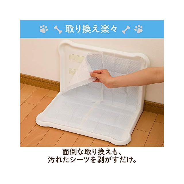 【シーツがズレない】:シーツを置くだけ、はがすだけの2ステップで、簡単にシーツ交換ができるペットトレー。ペットが上で動き回ってもシーツがずれない。