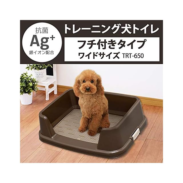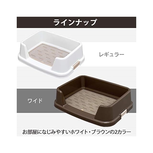 【トレーニングに最適なトイレ】:トイレを覚えやすい囲い付きタイプのペットトイレ。ふちが高いのでおしっこの飛び散り防止にも効果的。