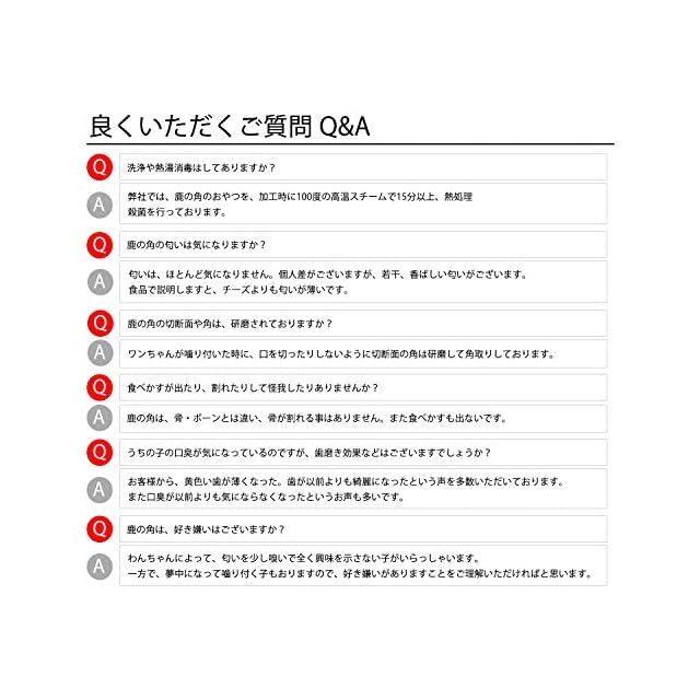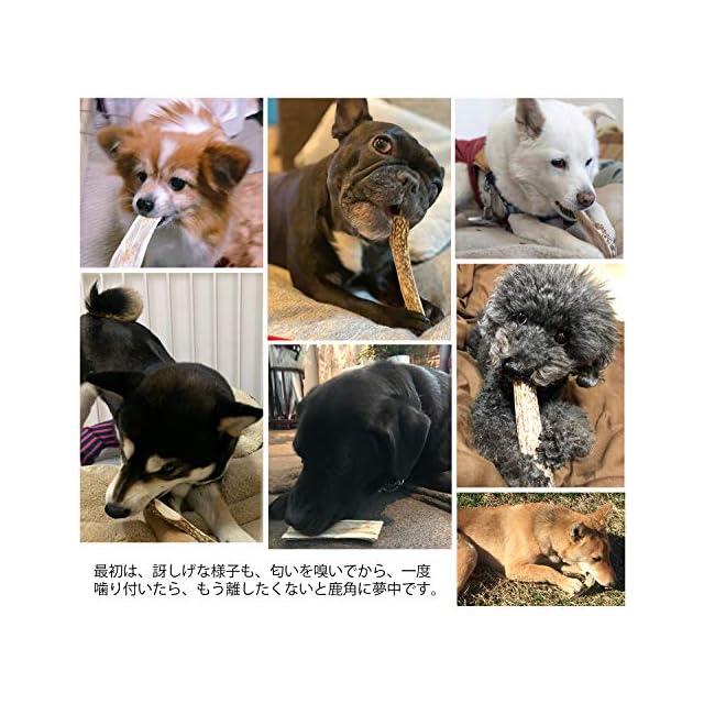 【口臭予防・デンタルケアに最適】 犬のおもちゃとして、プラスチック製品はすぐ飽きる。木製のかじり棒や、豚の皮は、すぐ小さくなったり、食べ終わってしまう。牛の蹄は、匂いが臭いし、呑みこみの怖れも。そんな悩みにお答えするのは、長く噛み噛みできて、呑みこみの恐れも少ない、鹿角がおススメです。鹿角を噛むことで、唾液が沢山出ることで、口内の細菌の増殖も抑えられ、歯や歯茎を刺激して、歯磨き効果もございます。