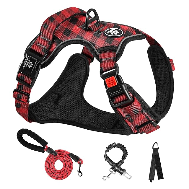 NESTROAD 犬 ハーネス 犬用胴輪 調節可能 夜間反射 通気性 メッシュ 歩行補助 散歩 しつけ用 軽量 安全 おしゃれ 引っ張り防止 ドッグ 柴犬 秋田犬 小型犬/中型犬/大型犬 赤格子 S