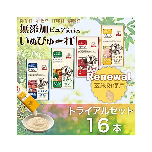 【玄米粉使用】【犬用お試しセット/お一人様1個まで】日本産 犬用おやつ いぬぴゅ~れ 無添加ピュア PureValue5 トライアルセット 16本入 (4本×4袋)