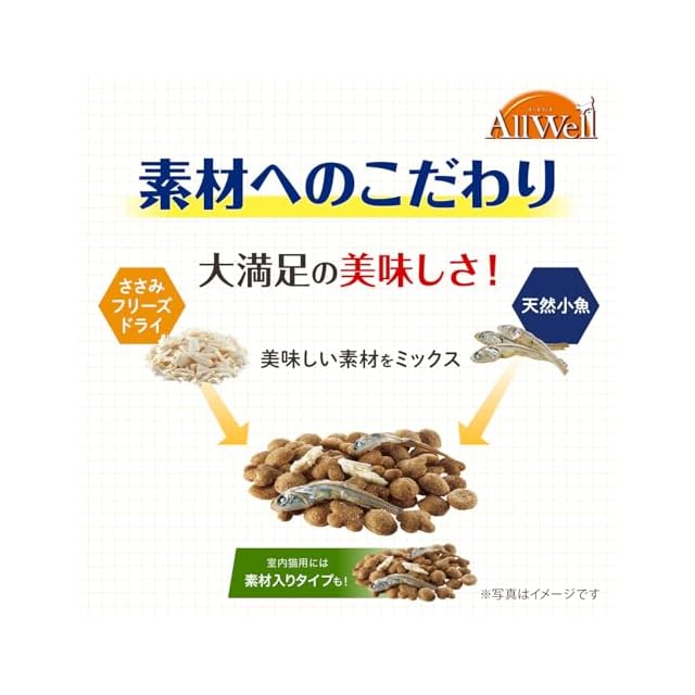 猫が大好きなフィッシュの旨みが詰まった粒に、天然小魚とささみフリーズドライ混合による高い嗜好性。