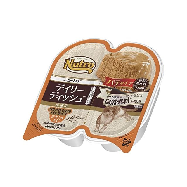 Nutro デイリーディッシュ ウェット グルメ仕立てのパテ 成猫用 75g(37.5g×2)×24個 サーモン&エビ トレイ 缶詰 少量使い切り 総合栄養食 アダルト 1歳以上 キャットフード 猫 まとめ買い 穀物フリー グレインフリー 厳選自然素材 香料・着色料 無添加 下部尿路の健康維持 ニュートロ