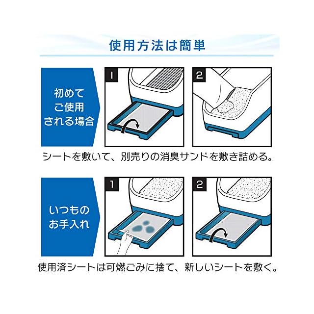 厚みのあるシートで1枚で約1週間交換せずに使用できます。(※標準的な成猫1匹で使用した場合の目安。猫の状態、季節により交換の時期は異なります)