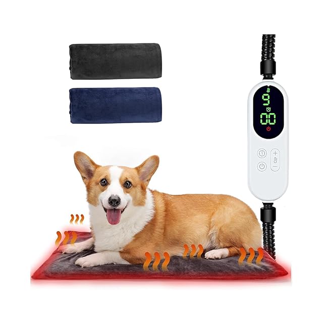 Angelpet ペット用ホットカーペット【ペット専門家監修】 9段階温度調節 14段階タイマー機能 ペット用ヒーター 猫 犬 小動物 ホットマット ヒーターマット 加熱パッド 過熱保護 防水難燃性 コード全て鋼管で保護 噛み癖対策 厚手 柔らか 寒さ対策 カバー2枚付き (Lサイズ(45*70))