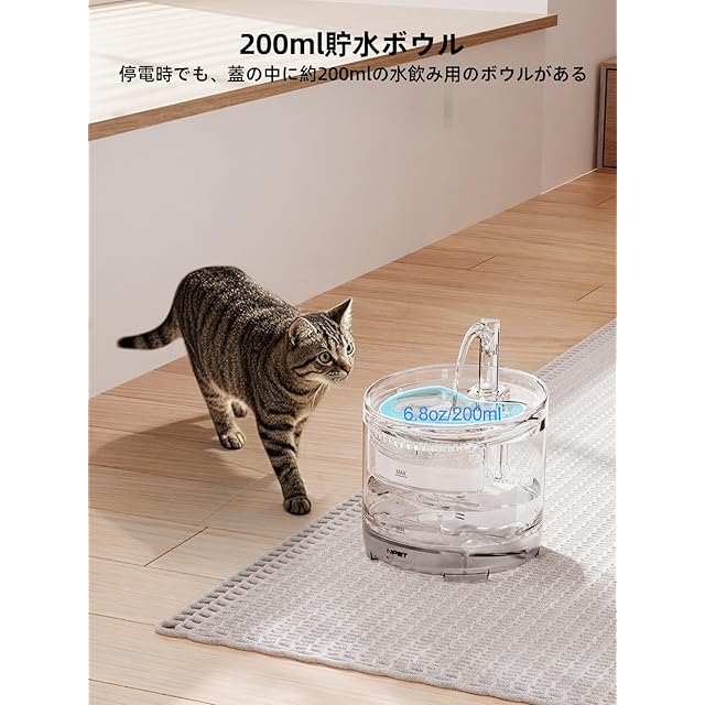 【200ml緊急貯水対応】貯水カバーに約200mlの貯水ボウルがあり、一時的の停電も大丈夫!平日、猫ちゃんも蛇口と貯水ボウルから飲めます。