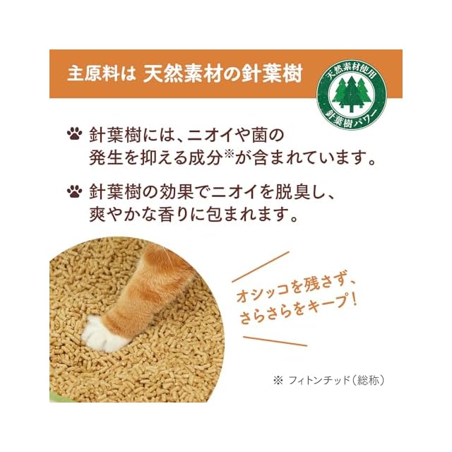 【主原料は天然素材の針葉樹】針葉樹にはニオイや菌の発生を抑える成分が含まれています。人工香料、抗菌剤は使用していません。