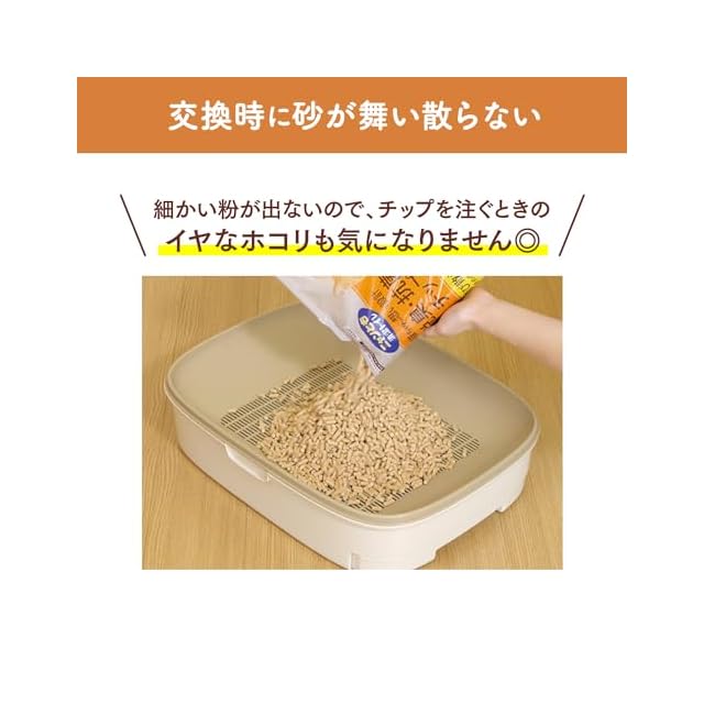 ウンチと尿のニオイをしっかり閉じ込める! 尿で固まらず取り除く手間なし。飛び散らない大きめの粒。