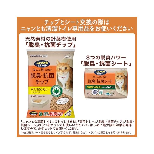 【1週間取り替えなしでもニオわない! 】ニャンとも清潔トイレ専用のチップとシートでダブル脱臭&抗菌※すべての菌の増殖を抑制するわけではありません