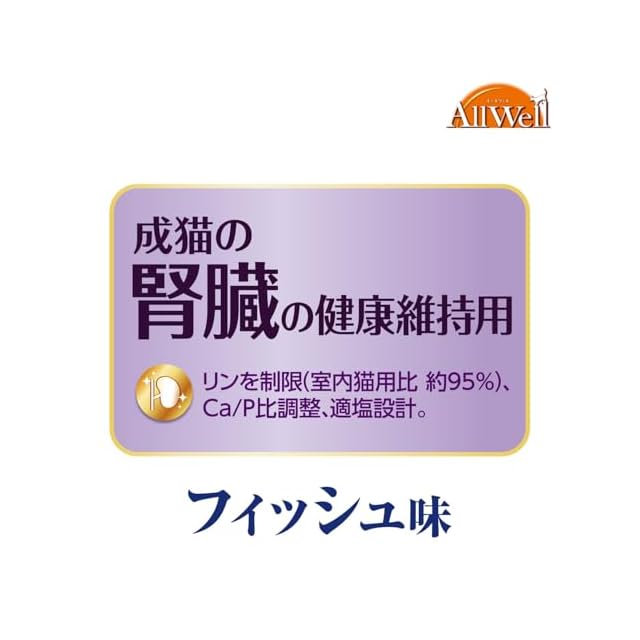 腎臓の健康維持に配慮して、リンを制限(*室内猫用比 約95%)、Ca/P比調整、適塩設計。