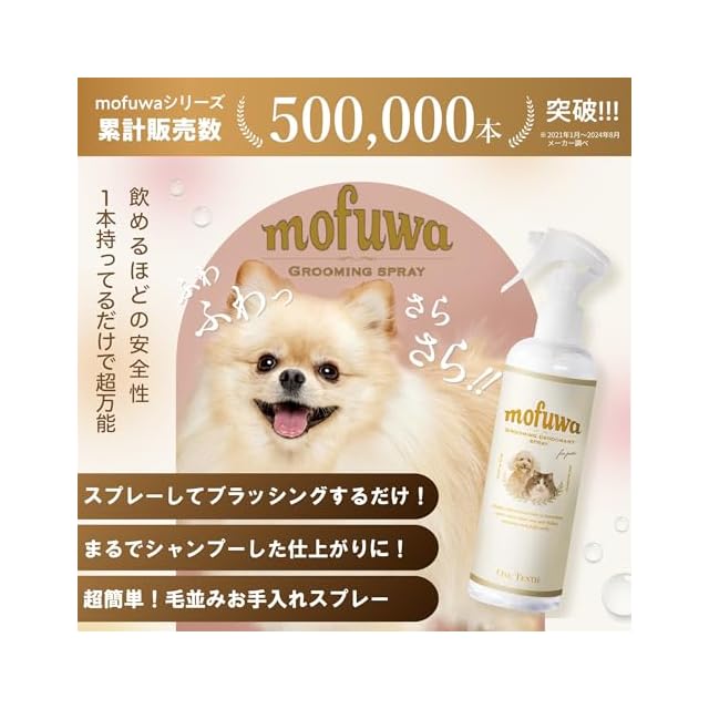 【mofuwaグルーミングスプレーとは?】スプレーしてブラッシングするだけで、毛並みさらふわになるグルーミングスプレーです。ブッシングスプレーやドライシャンプーのような感じでお使いいただけます。