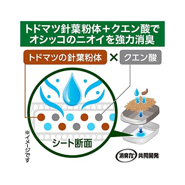 【トドマツ針葉粉体とクエン酸配合でダブル消臭】オシッコのイヤなニオイにも高い消臭効果を発揮します。抗菌※仕様のシートです。※すべての菌に効果があるわけではありません。