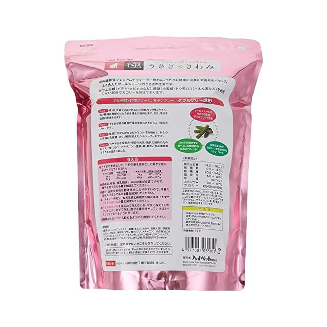 でん粉類・穀類フリー、グルテンフリーの“ダブルフリー! でん粉類(ポテト・タピオカなど)、穀類(小麦粉・トウモロコシ・えん麦)を使用しない配合でカロリーを抑えてあります。 高繊維質プレミアムチモシーを主原料に、うさぎの健康に必要な栄養素をバランスよく含んだオールステージのうさぎの主食です。