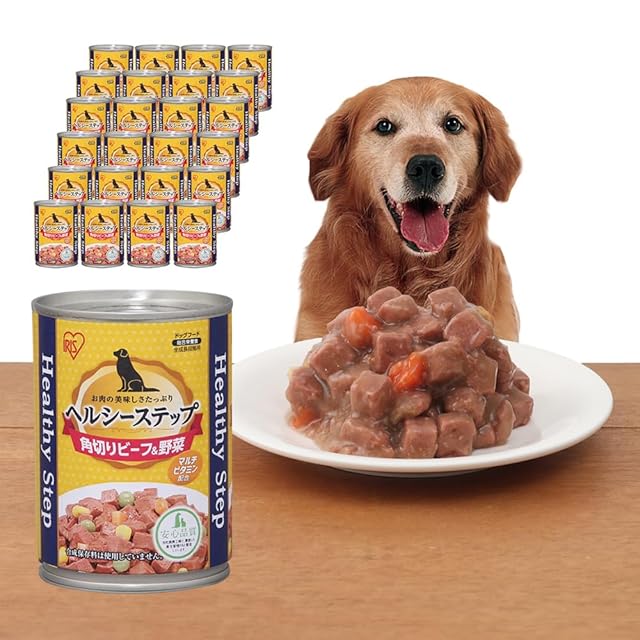 商品名:アイリスオーヤマ ヘルシーステップ ドッグフード 総合栄養食 角切りビーフ&野菜 合成着色料・合成保存料不使用 375g×24個セット