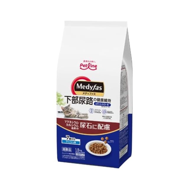 商品名:メディファス キャットフード 7歳から フィッシュ味 【下部尿路/pHコントロール/麻布大学共同開発/国産/アルミ小分け】 1.5kg(250g×6)