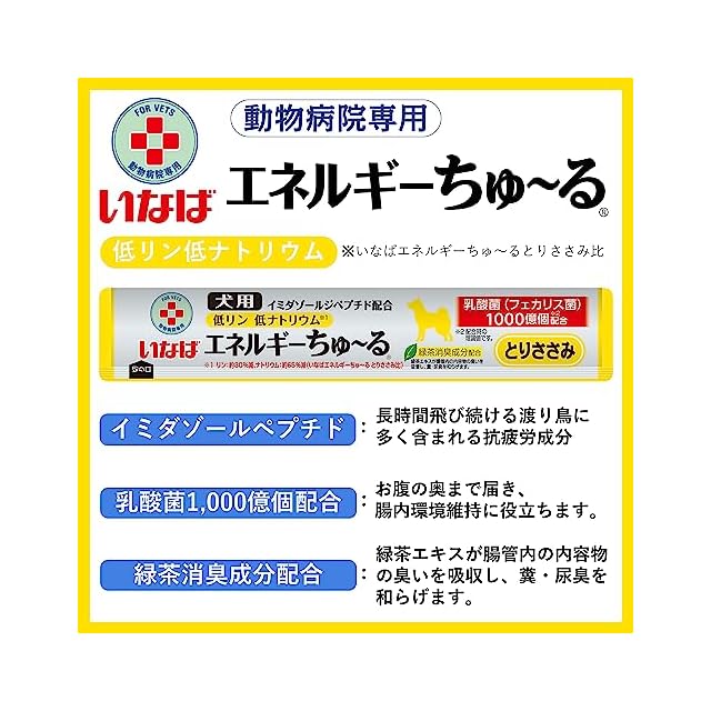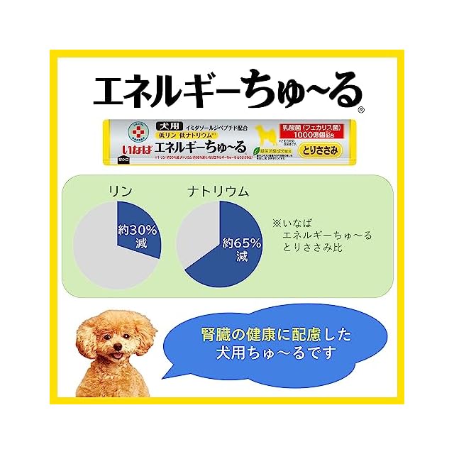 商品名:いなば 犬用おやつ エネルギーちゅ~る 乳酸菌1,000億個 低リン低ナトリウム とりささみ味 14グラム (x 50本)