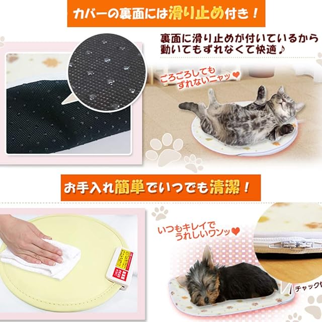 本体の使用面は、表が高温面(約38°C)、裏が低温面(約28°C)と2つの面があり、気候やペットの状態に合わせて選べます。