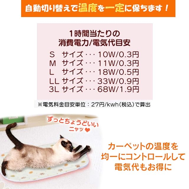 温度調整するサーモスタットが内部に配置されており、カーペットが適温に保たれ、無駄な電力をカットします。