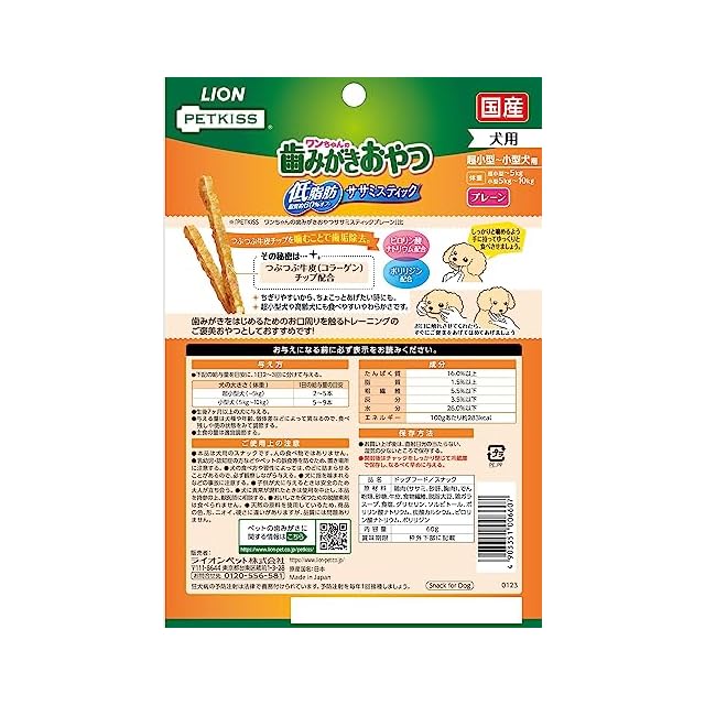 商品名:ライオン PETKISS ワンちゃんの歯みがきおやつ 低脂肪ササミスティック プレーン 4個パック 低脂肪プレーン 60グラム (x 4) (まとめ買い)