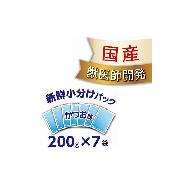 【国産削り節ミールを使用】愛猫も喜ぶ、うまみかつお味。国内での研究、開発、国内製造、原材料にこだわり、日本のペットのライフスタイルを究めたプレミアムキャットフードです。【200gの小分けパック】湿度の高い日本でも、いつでも美味しく食べてもらえるよう、脱酸素剤入りの新鮮小分けパックで、つくりたての美味しさをキープします。