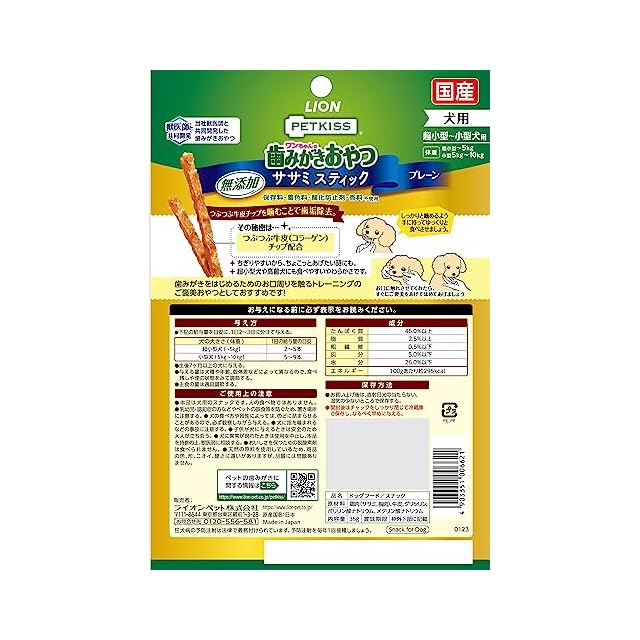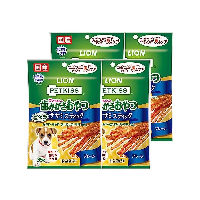 商品名:ライオン PETKISS ワンちゃんの歯みがきおやつ 無添加ササミスティック プレーン 4個パック チキン 無添加プレーン 35グラム (x 4) (まとめ買い)
