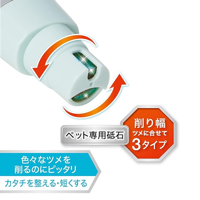 ペット専用砥石、ツメに合わせて削り幅3タイプ。
