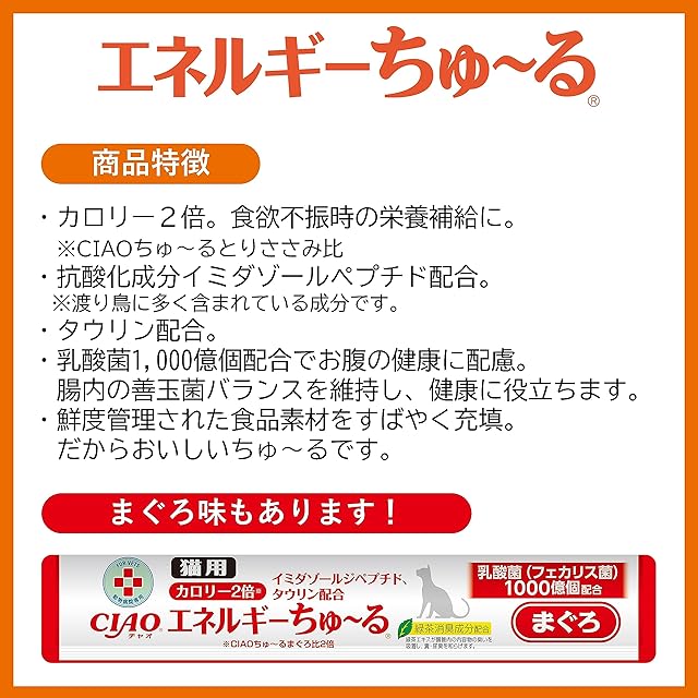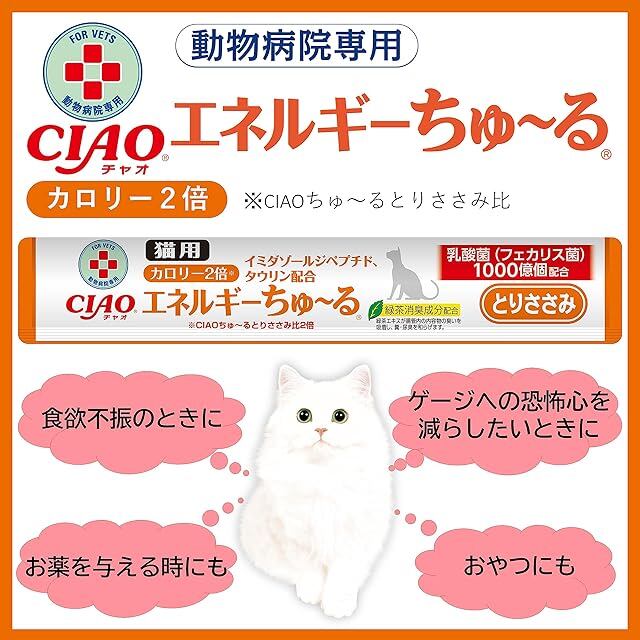 商品名:チャオ (CIAO) 猫用おやつ エネルギーちゅ~る 乳酸菌1,000億個 とりささみ味 14グラム (x 50本)