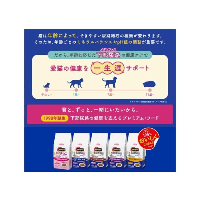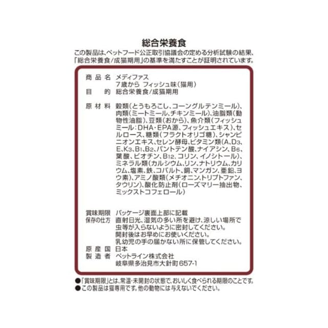 商品名:メディファス キャットフード 7歳から フィッシュ味 【下部尿路/pHコントロール/麻布大学共同開発/国産/アルミ小分け】 3kg(500g×6)