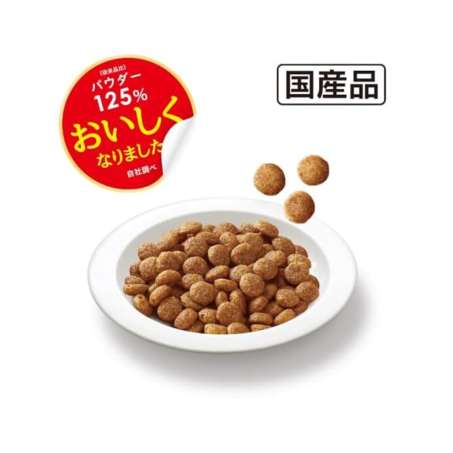 穀類(とうもろこし、コーングルテンミール)、肉類(ミートミール、チキンミール)、豆類(おから、脱脂大豆)、油脂類(動物性油脂)、魚介類(フィッシュミール:DHA・EPA源、フィッシュエキス)、セルロース、糖類(フラクトオリゴ糖)、卵類(ヨード卵粉末)、シャンピニオンエキス、ビタミン類(A、D3、E、K3、B1、B2、パントテン酸、ナイアシン、B6、葉酸、ビオチン、B12、コリン、イノシトール)、ミネラル類(カルシウム、リン、ナトリウム、カリウム、塩素、鉄、コバルト、銅、マンガン、亜鉛、ヨウ素)、アミノ酸類(メチオニン、トリプトファン、タウリン)、酸化防止剤(ローズマリー抽出物、ミックストコフェロール)