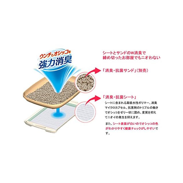 商品紹介 閉めきったお部屋でも1週間ニオわない!1週間分の尿をしっかり吸収し、抗菌剤がニオイを強力に抑えます(愛猫1頭(体重8kgまで)のデオトイレ使用時) 猫専用の消臭マイクロカプセル配合・シートの吸収面が白いので、オシッコの色がわかりやすく、健康状態をチェックすることができます。 原材料・成分 ポリオレフィン不織布・綿状パルプ・吸水紙・高分子吸水材・ポリエチレンフィルム・抗菌材・ホットメルト接着剤・香料入りマイクロカプセル 使用方法 デオトイレ又はその他のシステムトイレと一緒にお使いください。単品では使用しないでください。また、デオトイレをご使用の場合は必ずデオトイレ専用の消臭・抗菌シートもあわせてご使用下さい。