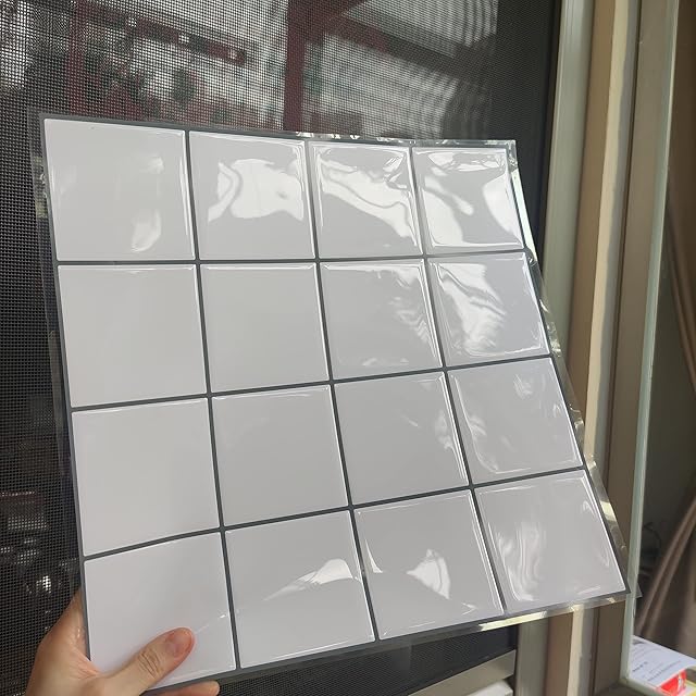 MORCART | 常に適切な | ホワイトラージチェック タイルシール 防水 耐熱 キッチン 洗面所 トイレ DIY 家具やアイテムの装飾 タイルシート 壁紙シール 3D リメイクシート (30x30cm, 10枚)