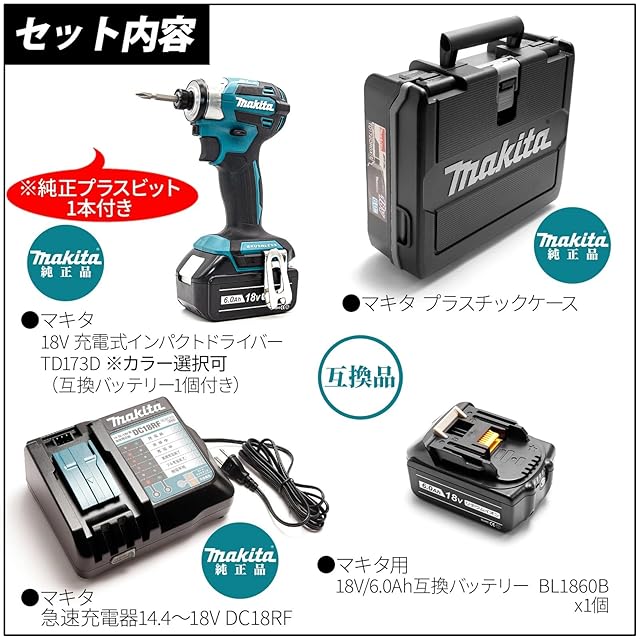 マキタ TD173 5点セット 2025年 限定色 ブラウン インパクトドライバー 互換バッテリー 2個セット 18V 6Ah 純正充電器 DC18RF 純正ケース 取り扱い説明書 動作確認表付 Makita