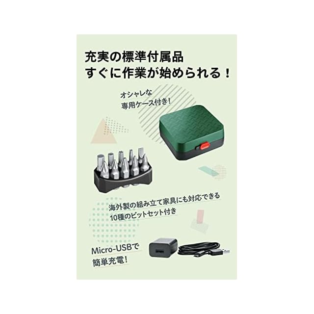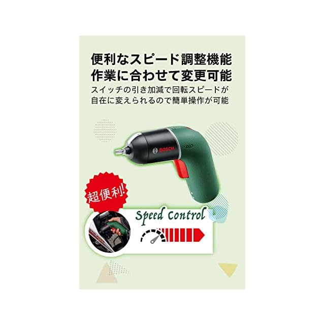 ボッシュ(BOSCH) コードレス電動ドライバー IXO6 ダークグリーン 無段変速 正逆転切替 LEDライト (ビット10本・USBケーブル・ケース付) 締付工具 ドリルドライバー