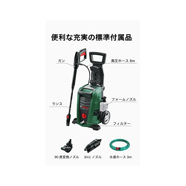 ボッシュ(BOSCH) 高圧洗浄機 1500W 最大許容圧力12MPa パワフル洗浄 コンパクト収納 [8m高圧・3m水道ホース・車輪付き] UA125 クリーナー