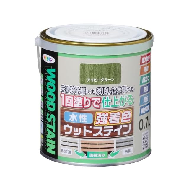 アサヒペン 塗料 ペンキ 水性強着色ウッドステイン 0.7L アイビーグリーン 水性 木部用 1回塗り 低臭 塗りやすい 日光や雨に強い 耐候性 はっ水 美しく保つ 木部保護 防カビ 防虫 防腐 防藻 時短 経済的 ステイン仕上げ 劣化した木部もきれいに仕上がる 塗り替え 日本製 | つむぎ屋