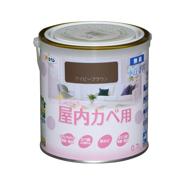 用途:(屋内外区分:屋内用)●リビング、寝室、子供部屋などの室内壁や天井(カベ紙・ビニールカベ紙)。●窓枠などの木部。●和室壁や天井(しっくい壁・京壁・土壁・砂壁・せんい壁・コンクリート・モルタル)。●浴室、キッチン、洗面所、トイレなどの壁や天井。