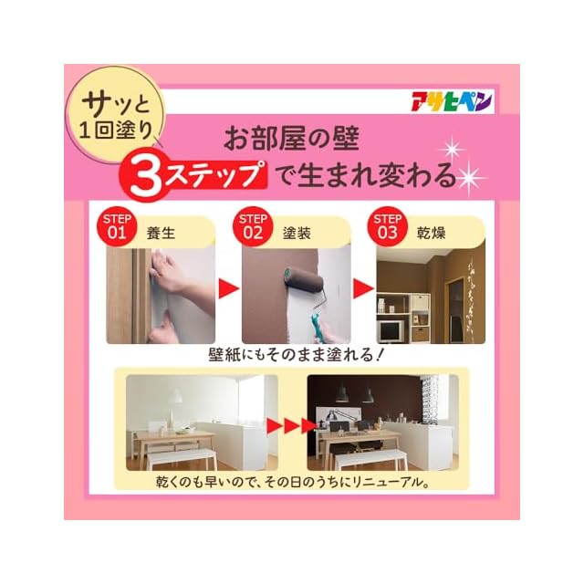 いやな臭いのしない無臭タイプで、1回塗りで仕上がります。
